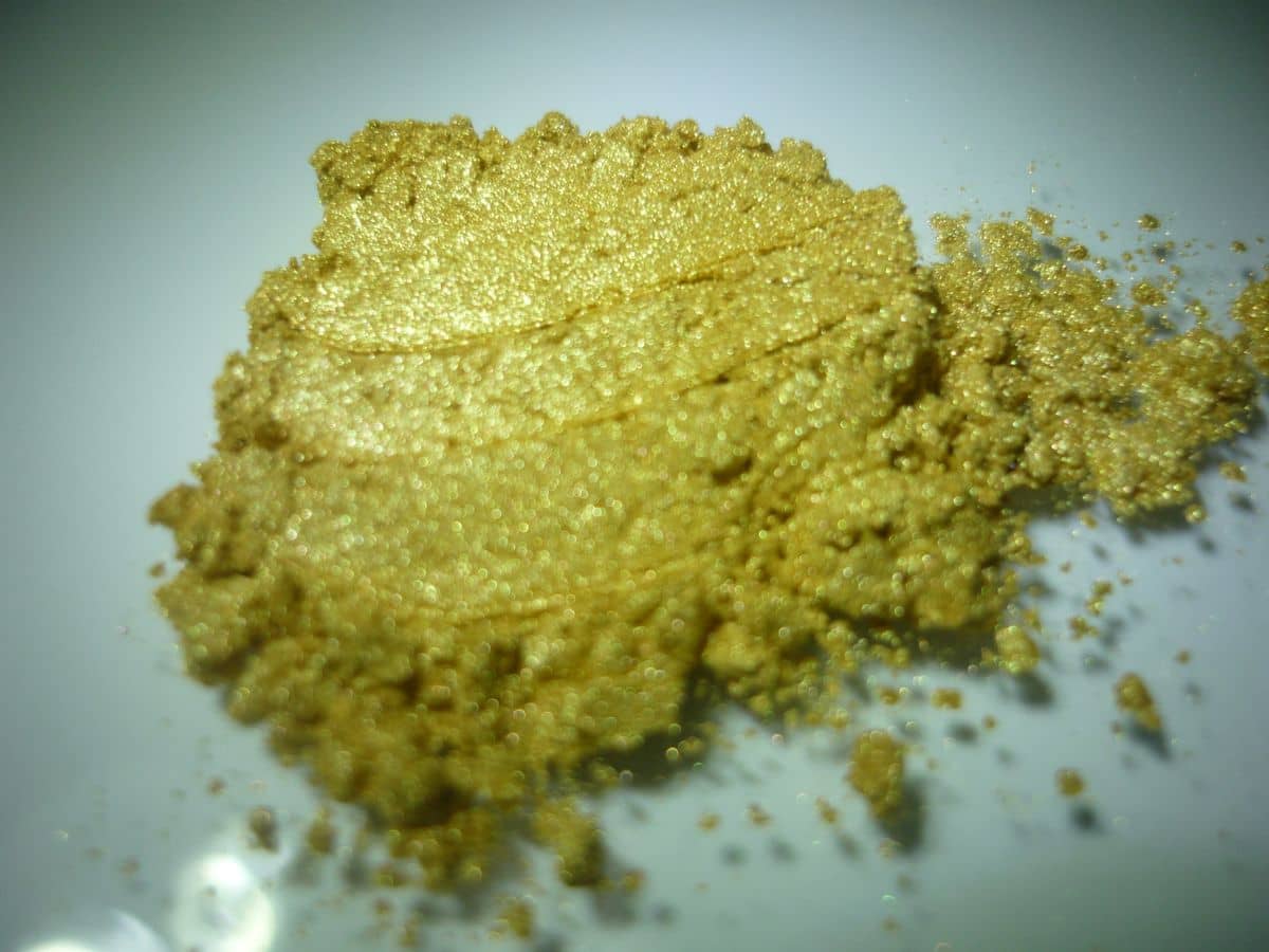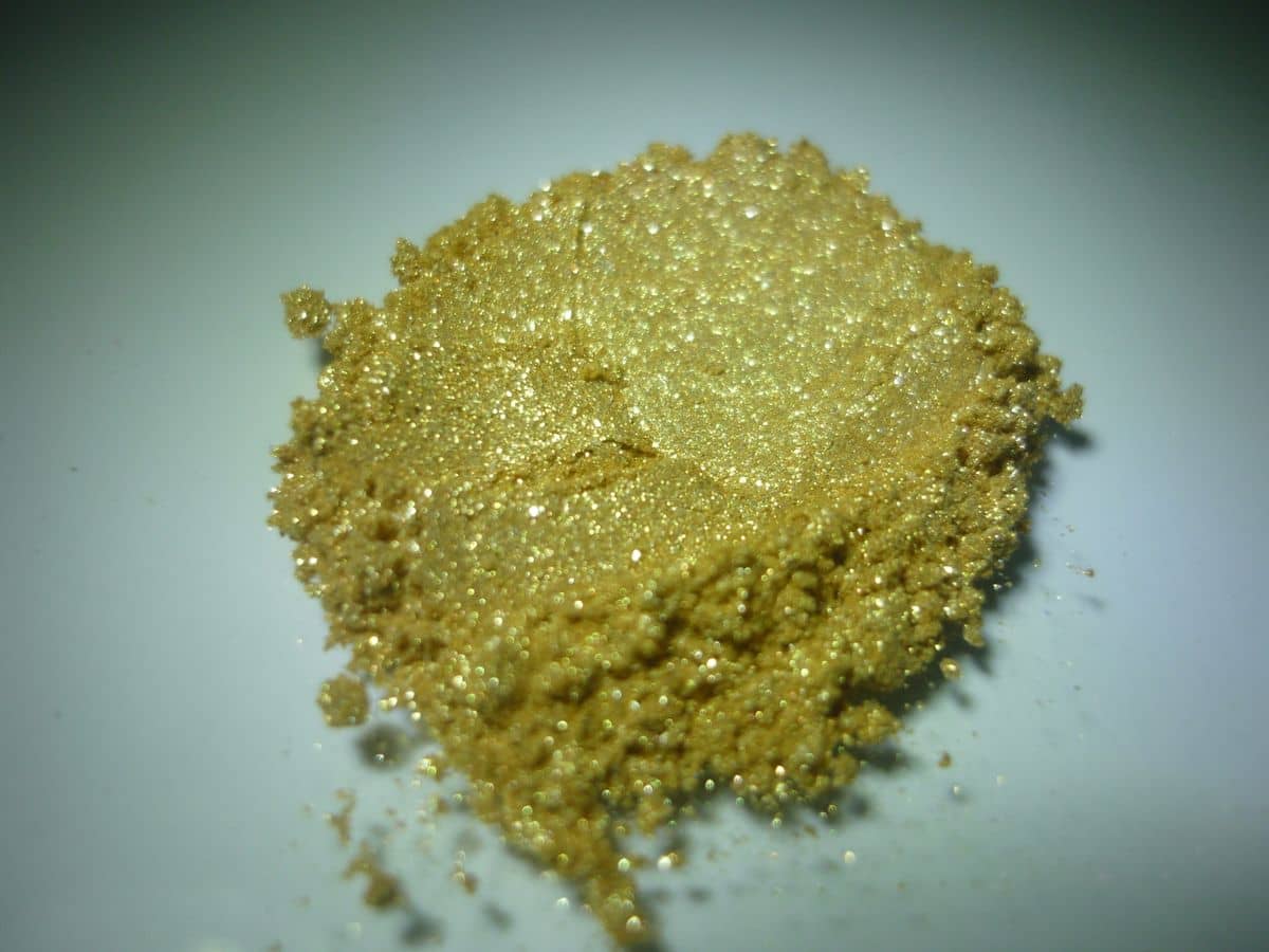 Coatings, Plastics, Printing Inks, Cosmetics, Epoxy Floors, Crafts, etc.Los pigmentos de mica metálica dorada están compuestos de plaquetas de mica o fluorflogopita sintética recubiertas de dióxido de titanio y óxido de hierro. La capa de óxido de hierro contribuye al tono dorado, mientras que la estructura en capas genera un reflejo nacarado.
